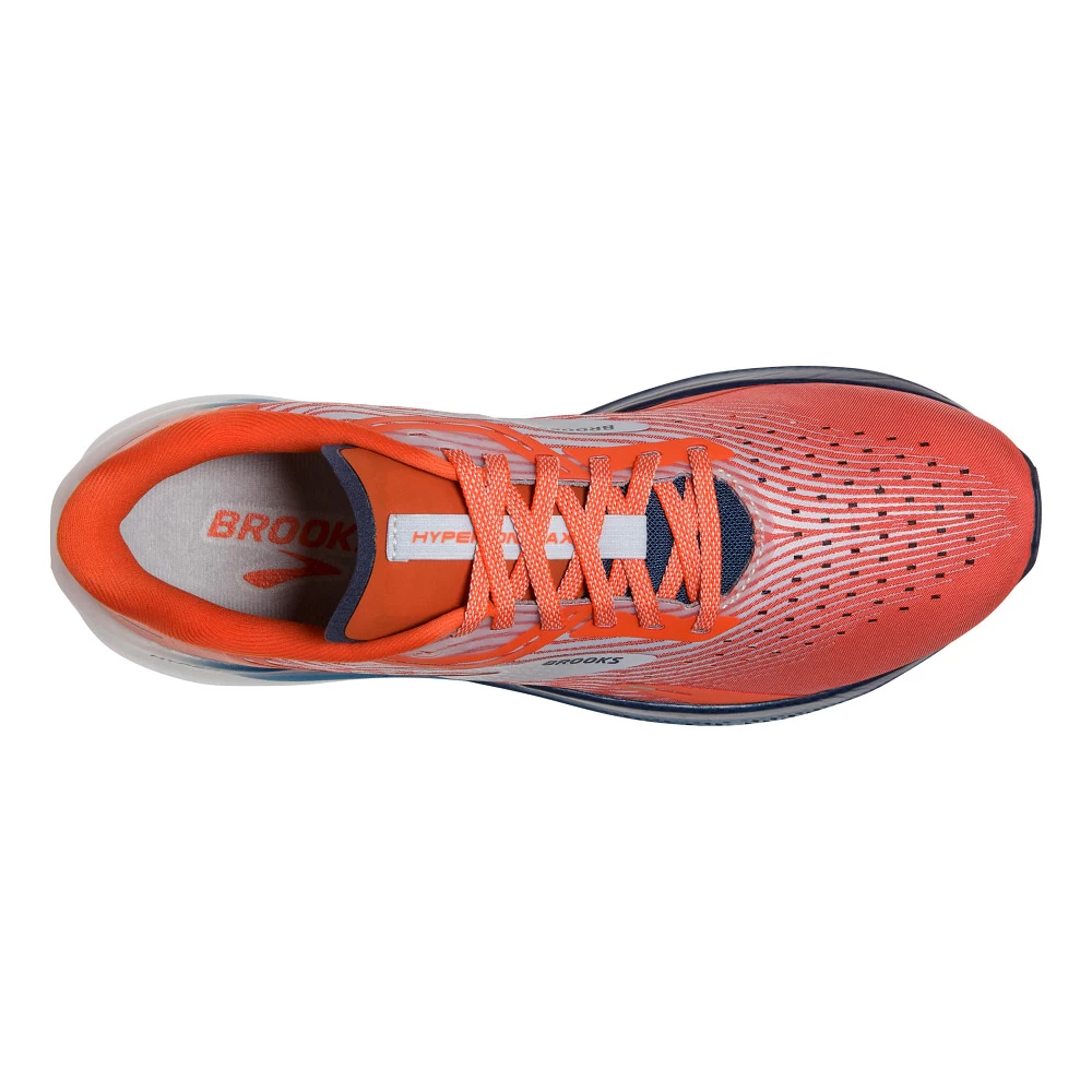 Men’s BROOKS® HYPERION MAX :: This running shoe is an endorphin hit! Built for speed like you’ve never felt before, your Men’s Brooks Hyperion Max offers a triple threat you can’t resist. Nitrogen infused DNA flash cushioning is dense, adaptive, and ultra-lightweight, helping you recover with each stride. Rapid Roll technology with a heel to toe curve, literally launches you forward for more efficient turnover. And a stretch woven upper gives you amazing breathability as you fly. Your Hyperion Max cracked the code and is helping you experience a faster, more enjoyable run.