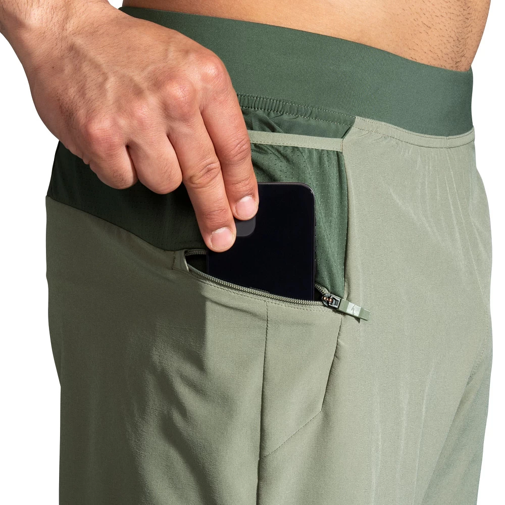 Men’s Brooks® Sherpa 5″ 2-in-1 Short :: Enjoy distraction-free running in your sustainably made Men’s Brooks Sherpa 5″ 2-in-1 Short. Get stay-in-place comfort with a new sweat-wicking liner made with smooth, chafe-free seams. Now with an updated waistband that sits higher, you get a secure drawstring for customized adjustability.