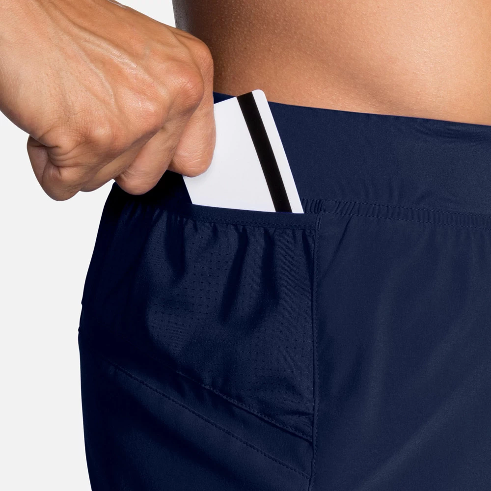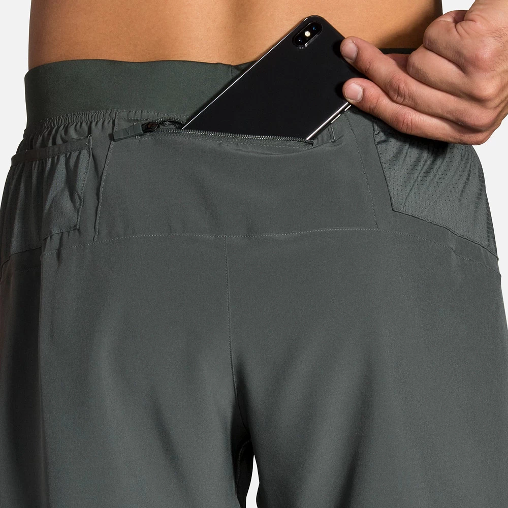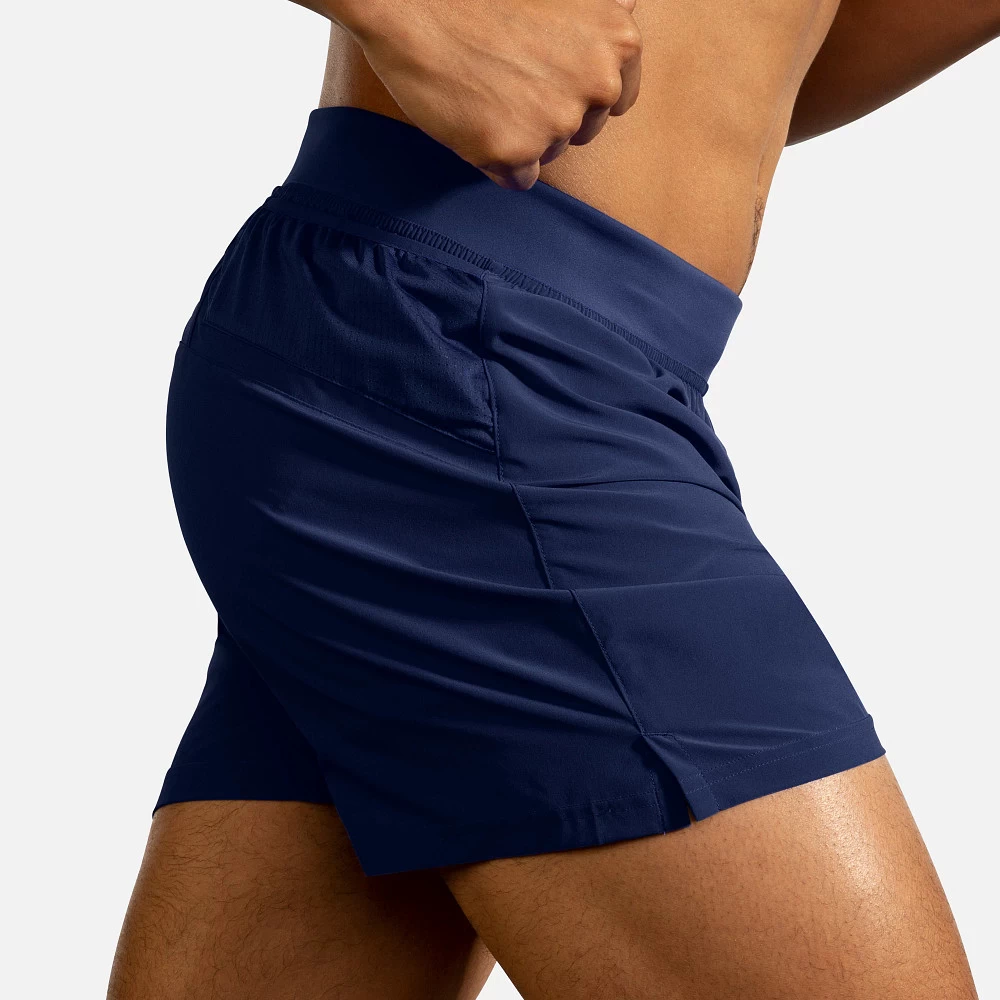 Men’s Brooks® Sherpa 5″ Short :: Run distraction-free with the updated fit of your Men’s Brooks Sherpa 5″ Short. Made with a new flat waistband that won’t ride up or fall down, a sweat-wicking brief liner keeps shorts in place without bunching or chafing. Sustainably made from recycled polyester with plenty of pockets for taking necessities on the go.
