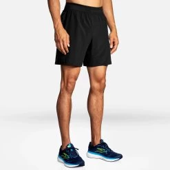Men’s Brooks® Sherpa 7″ Short :: Rock style, comfort and coverage with the updated fit of your Men’s Brooks Sherpa 7″ Short. Made with a new flat waistband that won’t ride up or fall down, a sweat-wicking brief liner keeps shorts in place without bunching or chafing. Sustainably made from recycled polyester with three pockets for taking necessities on the go