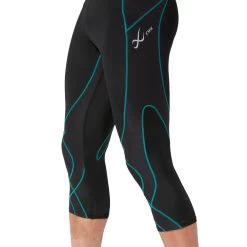 Men’s CW-X® Stabilyx Joint Support 3/4 Compression Tights :: The CW-X Stabilyx Compression Tights were engineered to support your joints during high intensity exercise. Features a patented EXO-WEB support panel to map your joints to provide support and stability without restricting your body’s range of motion. These tights combine compression with the benefits of kinesiology tape. Target areas: hips, knees, pelvis and lower back.