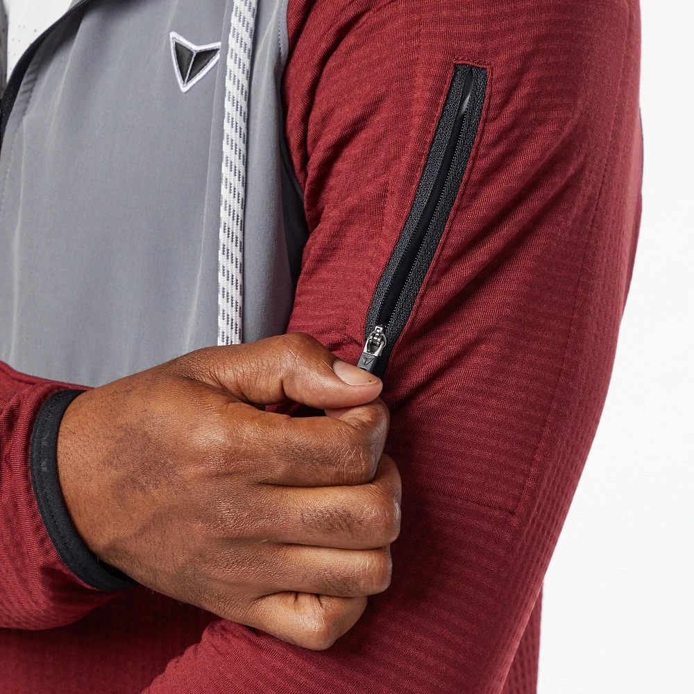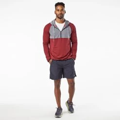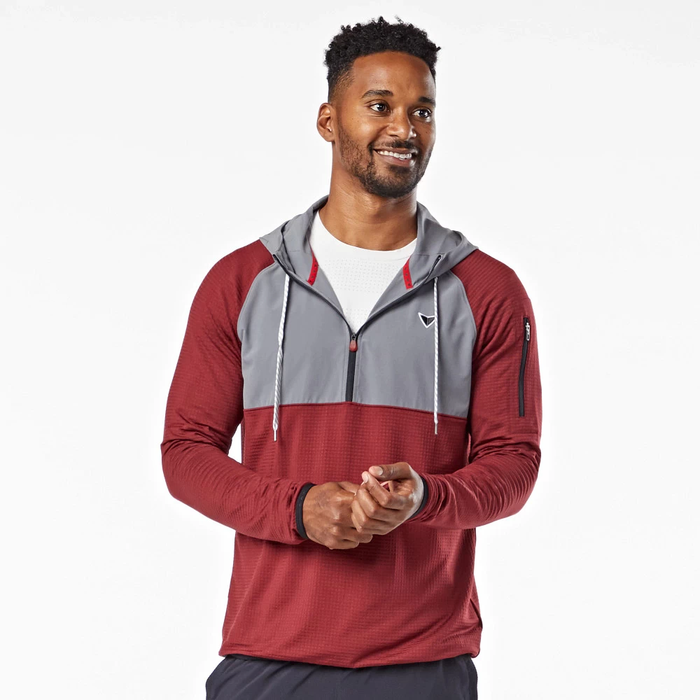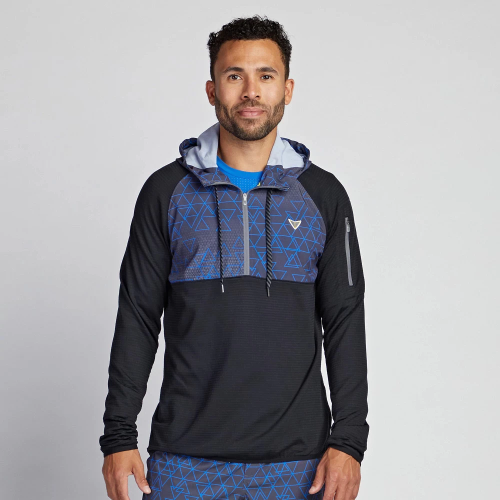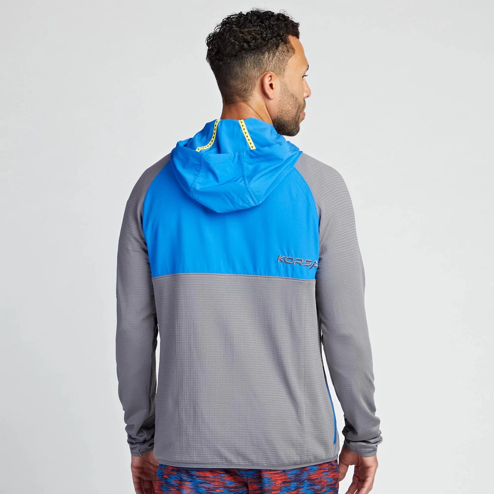 Men’s Korsa Shield 1/2 Zip Hoodie :: There’s no such thing as bad weather when you’re wearing this ultralight, weather resistant run jacket. Your new go-to layering hoodie will do the trick. Zip up just the right amount of warmth with a cozy thermal grid fleece and super breathable stretch woven panels for streamlined comfort.