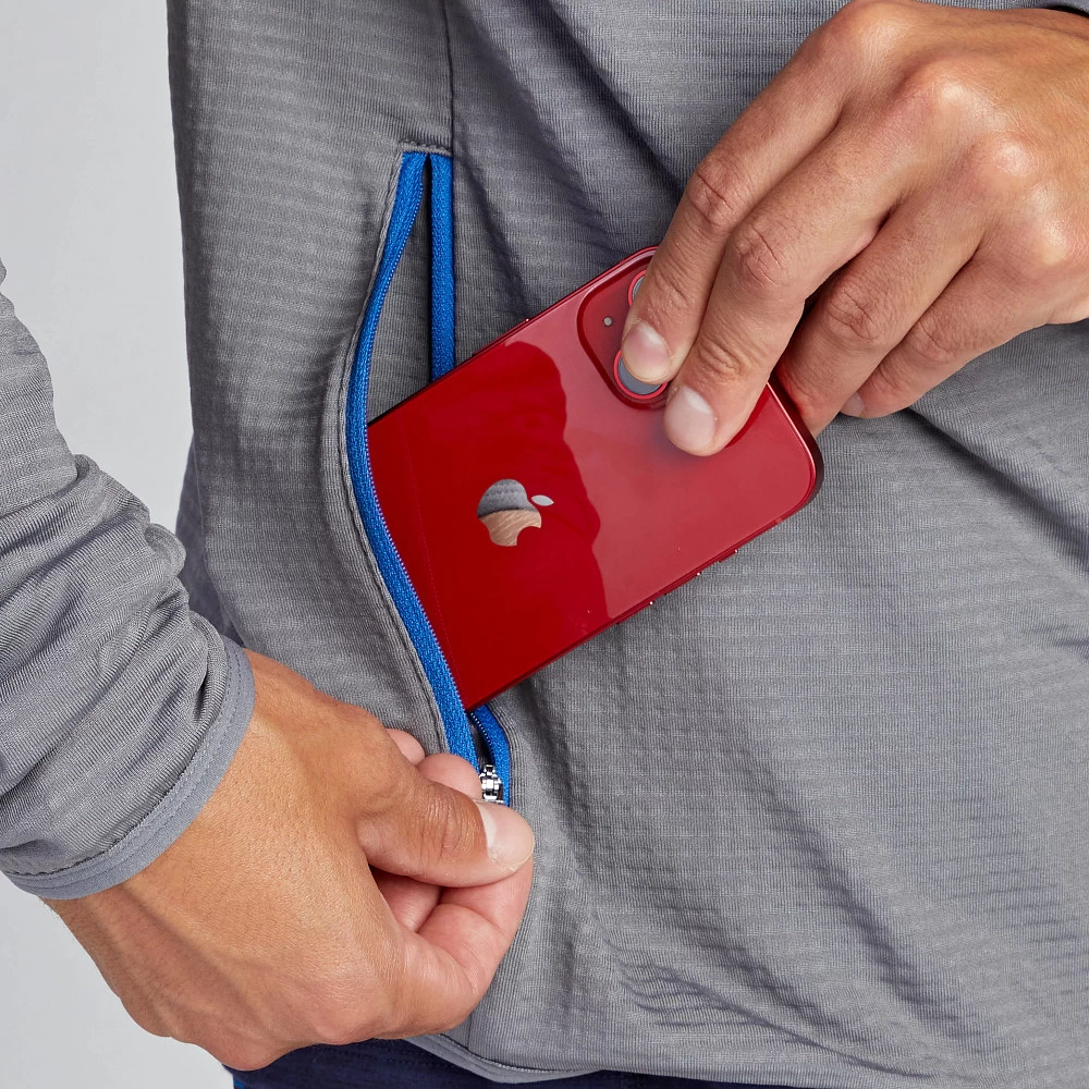 - Single Stash Pocket: One streamlined zippered arm pocket for safely tucking away your cards and keys.