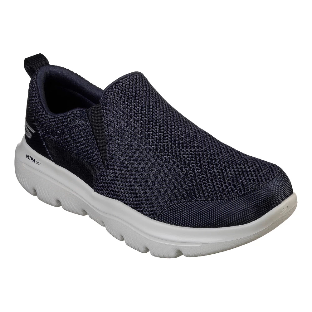 Men’s Skechers® Go Walk Evolution Ultra – Impeccable Slip-On Walking Shoes :: Take comfort to the next level in Skechers GOwalk Evolution Ultra – Impeccable walking shoes. This slip-on walking sneaker features a soft woven mesh upper with lightweight ULTRA GO cushioning midsole, Air-Cooled Goga Mat™ insole, and high-rebound Ultra Pillars for added support.