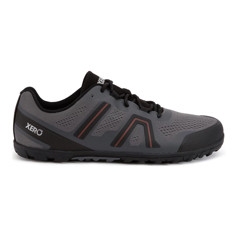 Men’s Xero® Mesa Trail II :: Natural movement meets nature. Feel connected to your world when you run or hike in the lightweight TerraFlex. The upgraded, welded upper increases mid-foot flexibility, wicking mesh keeps your feet cool and dry, and an aggressive, lugged sole provides confident traction. Bumps fade away thanks to 3mm of TrailFoam&trade hiding inside of the patented FeelTrue® sole. The heel cinch and adjustable mid-foot webbing give you a secure and stable fit, while the wide toe box lets your toes splay and flex to empower your stride