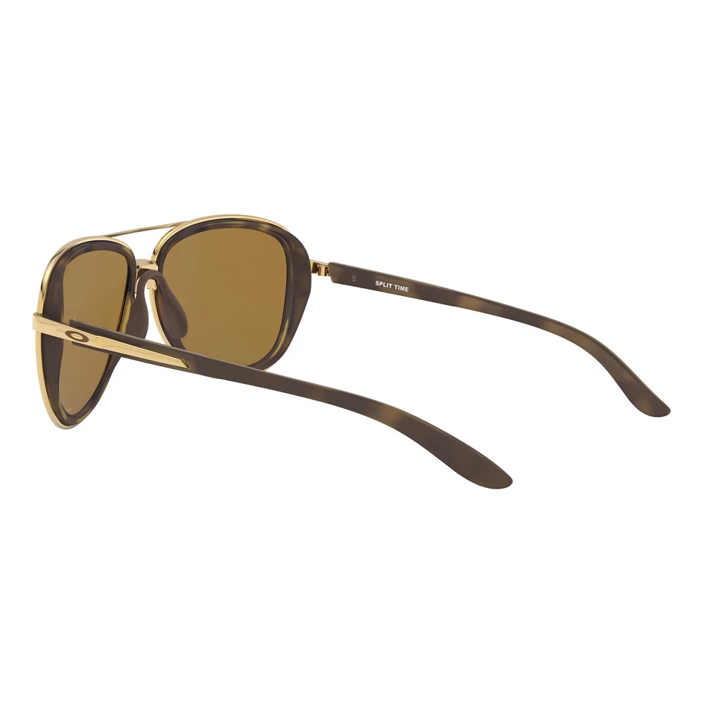Oakley® Split Time PRIZM Rose Gold Sunglasses :: Aviator shades get an upgrade in the Oakley Split Time PRIZM Rose Gold Sunglasses. Best suited for small to medium faces, a hat compatible design makes these great for daily wear. PRIZM™ lenses enhance color and contrast while side shields combat backside glare. A comfy three-point fit and Unobtainium™ nosepads keep glasses from slipping even while you’re sweating.