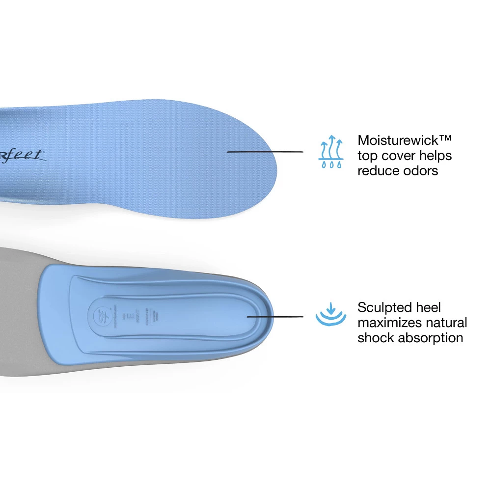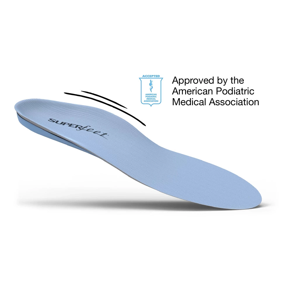 Superfeet® All Purpose Support Medium Arch Insole :: This best-selling insole gives you superior motion control and cushioning. Low profile design fits into running shoe with sockliners or insoles that can’t be removed. It also works well in lower-volume casual and sport (running, mountain biking, or tennis) shoes. Ideal for flatter feet that may not tolerate the more supportive Superfeet All Purpose Support Medium Arch Insole.