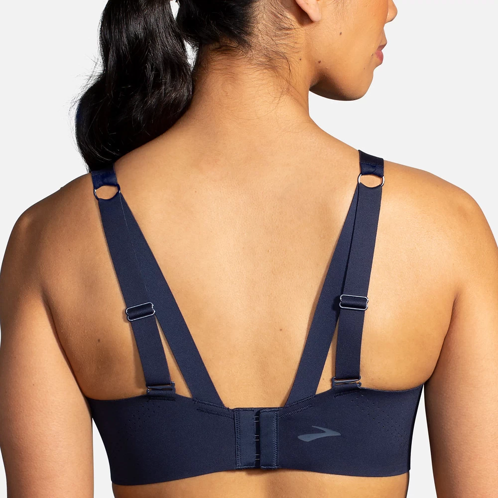 Women’s BROOKS® DARE UNDERWIRE RUN BRA :: If you like the look and locked-in feel of underwires, you’ll love working out in the new Women’s Brooks Dare Underwire Run Bra. Switch things up with straps that go from racerback to scoop back in a flash. Molded cups support and separate while sweat-wicking DriLayer™ Horsepower fabric moves sweat away from skin to evaporate.