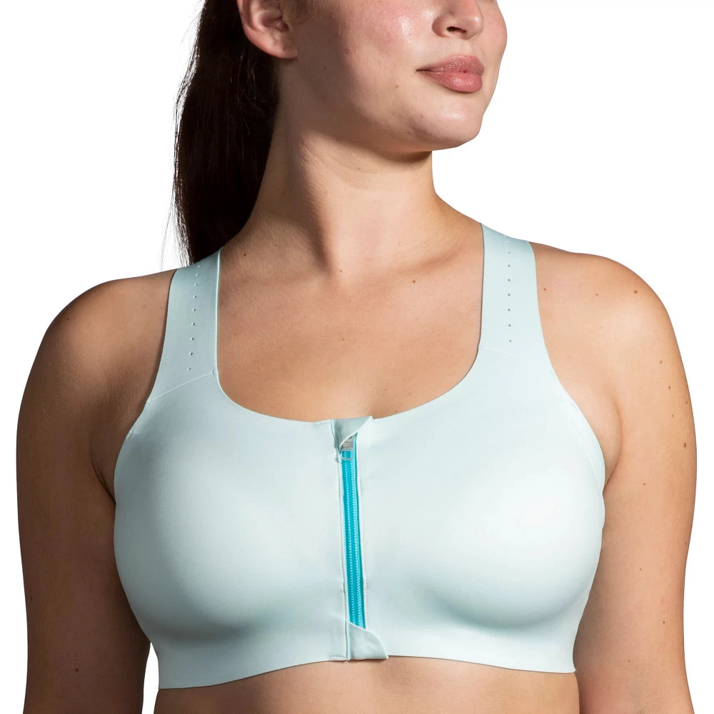 Women’s Brooks® Dare Zip Run Bra 2.0 :: Stylish, supportive, and secure, the updates to the Women’s Brooks Dare Zip Run Bra 2.0 are outstanding. The reinforced straps and band provide a seamless fit and feel. The material is buttery smooth and sweat-wicking. Your zip-front design got even better, with guards at the top and bottom to prevent irritation. You can now get ready at rapid speed, just zip up, and go!