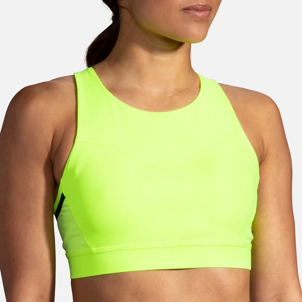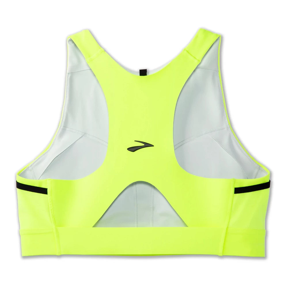 Women’s Brooks® Drive 3 Pocket Run Bra :: Pockets rule! Get secure, stealthy storage for all your essentials with the Women’s Brooks Drive 3 Pocket Run Bra. Two mesh side pockets and a bonded back phone pocket easily totes keys, music and more while you enjoy real run support in sweat-wicking DriLayer™ Horsepower fabric that keeps you comfy, mile after mile.