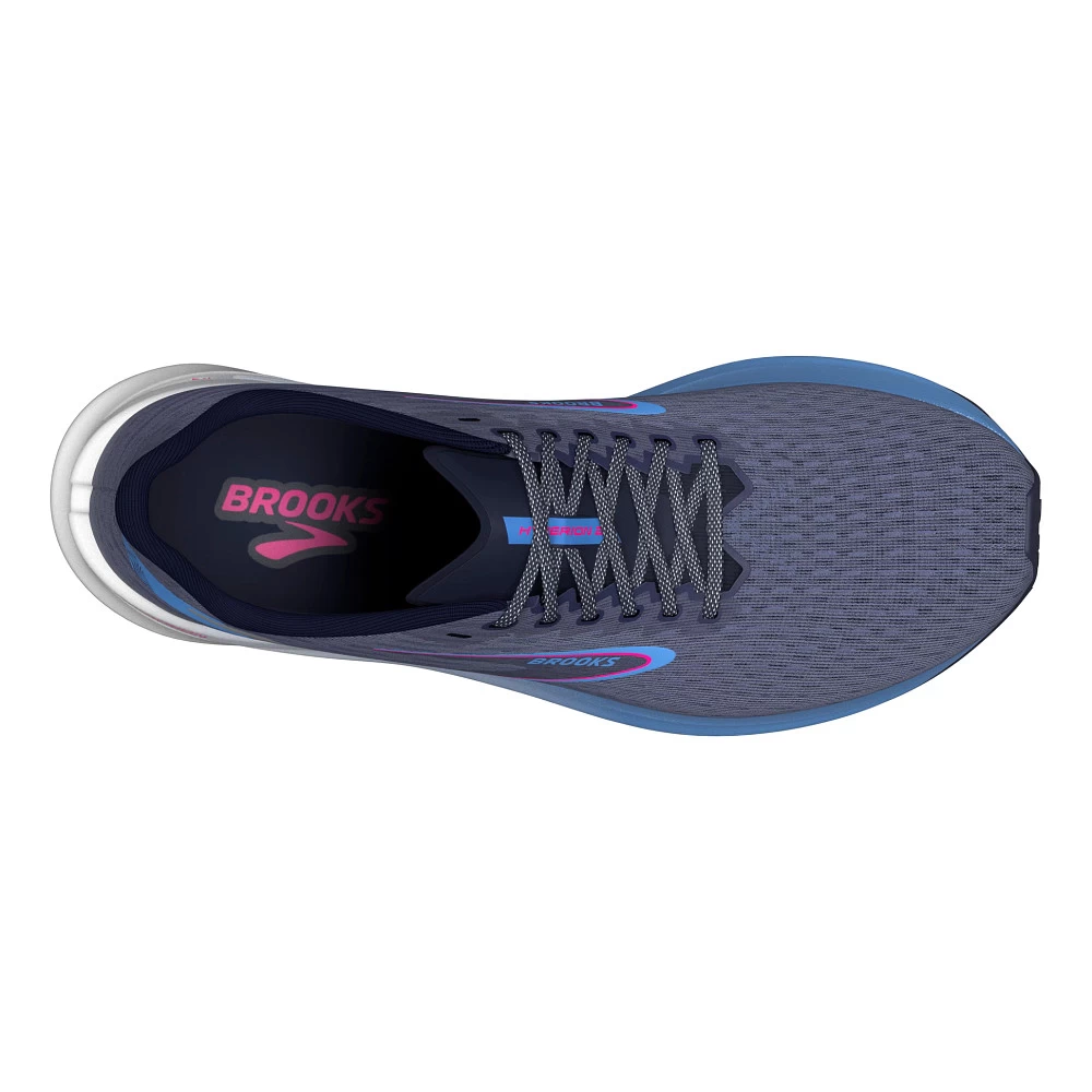 Womens’:s BROOKS® HYPERION :: A running shoe that makes you feel quick as lightning and comfy as a Sunday morning. Your new Women’s Brooks Hyperion features an updated midsole of nitrogen-infused DNA FLASH foam (hold your applause), and refreshed outsole that together, accelerate your heel-toe transition for a punchy ride and speedy strides. Plus, the new enhanced warp knit and mesh upper is lighter and more breathable – perfect for even your longest runs. Last but not least, a redesigned tongue with a partial gusset on your Hyperion ensures you always get a lockdown fit so you can stay comfortable all run long.