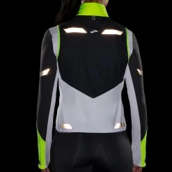 Women’s Brooks® Run Visible Insulated Vest :: Take on the night with the Women’s Brooks Run Visible Insulated Vest. Brilliant 3M™ Scotchlite™ Carbon Black Stretch Reflectivity and Brooks Nightlife Yellow, let you stand out in one of the most visible colors to the human eye. Constructed from weather resistant materials, stay warm and dry on your toughest runs.