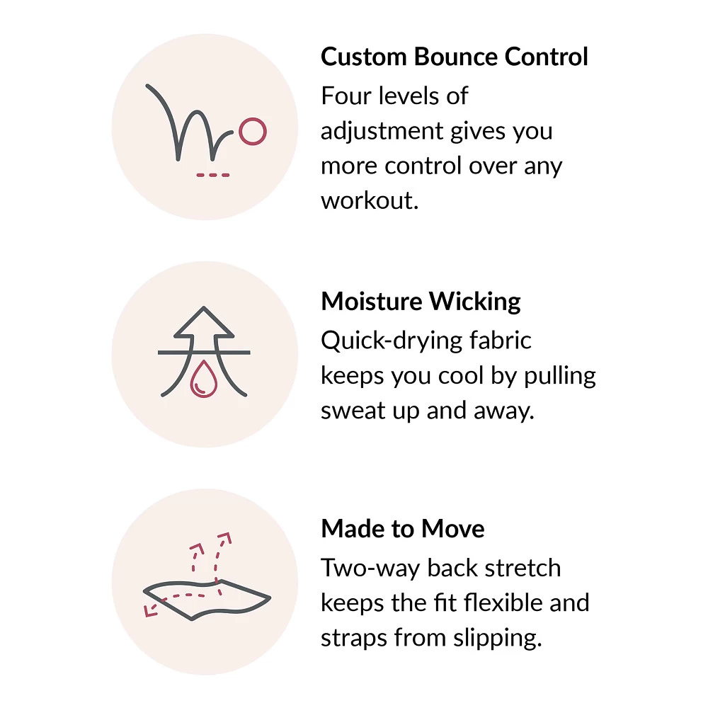 Women’s Glamorise® Custom Control Sports Bra :: From walking to running to yoga to aerobics, no matter what you do this amazing sport bra does it all. The innovative outer panel lets you adjust to four different levels of bounce control for all activity levels. The seamless inner bra shapes and supports your bust while the outer layer allows you to control the bounce level. Doing some yoga after a run? No problem – just adjust the outer panel accordingly and you are ready for your next workout. The moisture wicking fabric ensures that you stay cool and dry. This is the bra for all workouts, you are in control.