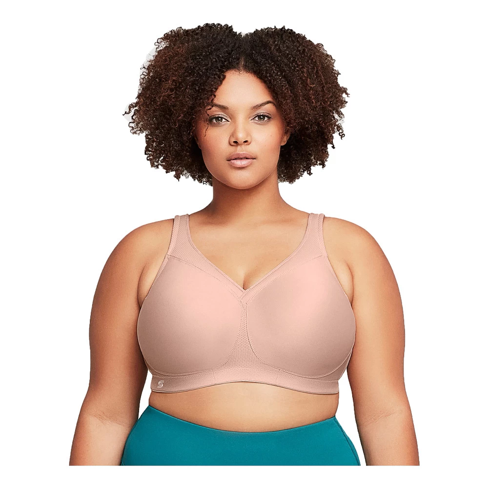 Women’s Glamorise® MagicLift Seamless Sports Bra :: Looking for a sport bra that not only works amazingly but also looks great under clothes? Look no further! This medium impact bra is designed to give a great natural shape, amazing support and incredible comfort so you can wear it before, during or after your workout. Seamless non-stretch cups provide great bounce control and a smooth look under clothes. The exclusive MagicLift design provides firm support without a wire. The moisture wicking fabric will keep you cool and dry when needed most and the two-way stretch back moves with you and prevents ride up.