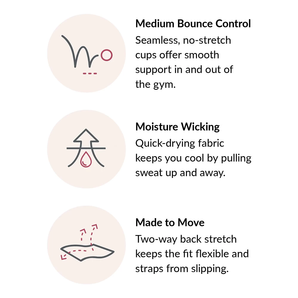 - Precision detail with seamless non-stretch cups for bounce control and smooth look under clothes