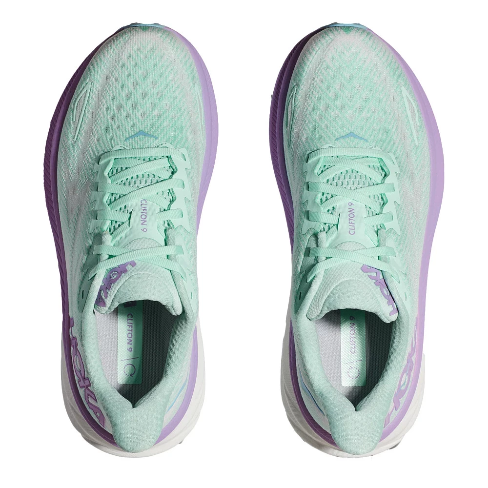 Women’s HOKA® CLIFTON 9 :: Like running on air! Your reimagined Women’s HOKA Clifton 9 returns an outstanding 4 grams lighter with a fresh design that’s ready to take you more miles! Along with stripping unnecessary weight, HOKA managed to simultaneously add 3mm of stack height underfoot in the form of a softer and more responsive foam! Chase the sunset in your Clifton 9 running shoes with a plush, reflective heel panel to keep you safe and comfy into the twilight hours.