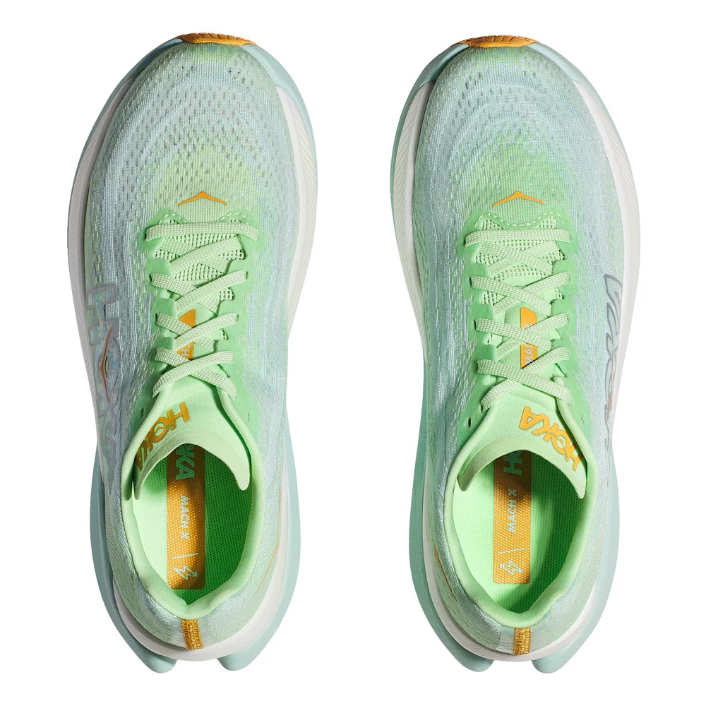 Women’s HOKA® MACH X :: The performance edge you’ve craved! Your new Women’s HOKA Mach X features a propulsive PEBAX® plate to provide an even, consistent stride over long distances. Step onto a layer of PEBA midsole foam (that should be mentioned is 34% more resilient than traditional Carbon X3 foam) for a soft and snappy feel guaranteed to offer high rebound cushioning on every run. Perfect for training or race day, the Mach X boasts superior traction with a Durabrasion rubber outsole so you can put in long miles on any terrain with ease.