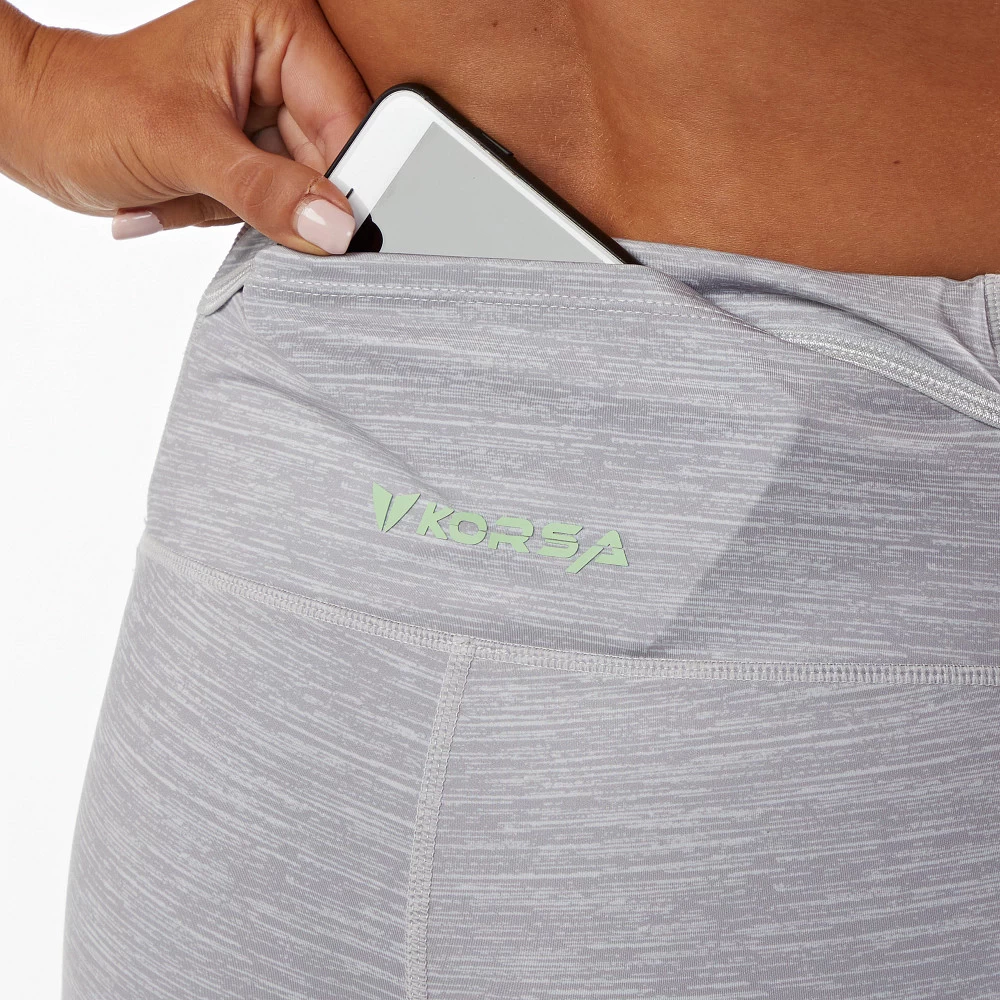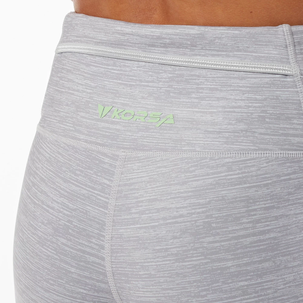 Women’s Korsa Accelerate 7/8 Tight :: Combat cooler days in the super sleek and comfortable Accelerate 7/8 Tights made to go the distance. Mid-rise and 7/8 crop length for the perfect coverage and an internal center back pocket and bonded side pockets to stow your stuff. Run on repeat with an antimicrobial gusset liner.