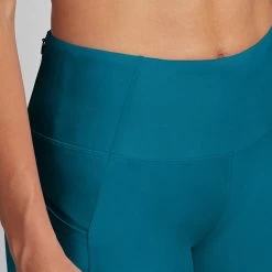 - Pockets: Three pockets total with one large pass-through pocket with two zippers at the back of the waistband, and two side pockets to secure essentials.