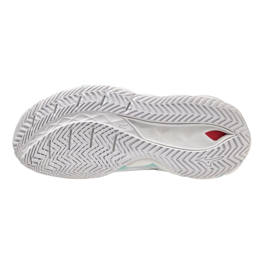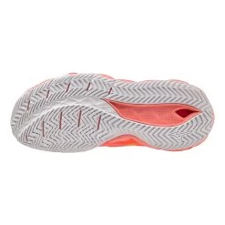 Women’s Mizuno® Wave Enforce Tour AC :: Designed for the advanced player, the all-new WAVE ENFORCE TOUR AC is the ideal shoe for powerful competitors who love to dictate points from the baseline. Equipped with MIZUNO ENERZY throughout the footbed, the Enforce Tour provides high energy return and plush cushioning for quick transitions without added weight. The DuRubber outrigger outsole supports forceful rotational movement, maximizing stroke power and footwork stability, and works in conjunction with a unique upper blend of CPU and mesh to produce a professional level of durability. The proprietary Dyna-Heel Lock system improves the fit and alignment of the ankle and heel, further enhancing stability and maneuverability. 6-MONTH OUTSOLE WARRANTY.