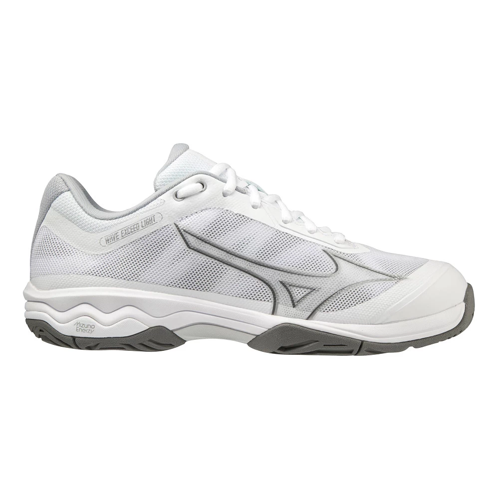 Women’s Mizuno® Wave Exceed Light AC :: Designed for the active player, the WAVE EXCEED LIGHT takes lightweight cushioning to another level. Whether your game is tennis or pickleball, you can stay on court all day long as the Wave Exceed Light is one of the lightest shoes in the tennis market. MIZUNO ENERZY is utilized in the heel, allowing for an extremely high level of energy return and responsiveness from the first serve to the final point. A new forefoot design provides a relaxed, wider fit while the X10 outsole supplies added durability exactly where it is needed. The total result is a luxurious, yet lightning-fast shoe created for all-day play.