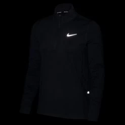 Women’s Nike® Dri-FIT Element Top Half Zip :: Cover up and block out the cold with your mock-neck Women’s Nike Dri-FIT Element Top Half Zip, then ease into the thumbholes at the ribbed cuffs and customize ventilation at the neck to cool off as your workout heats up.