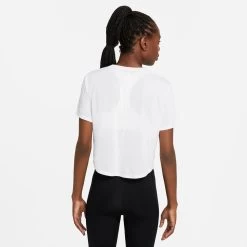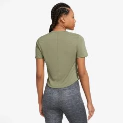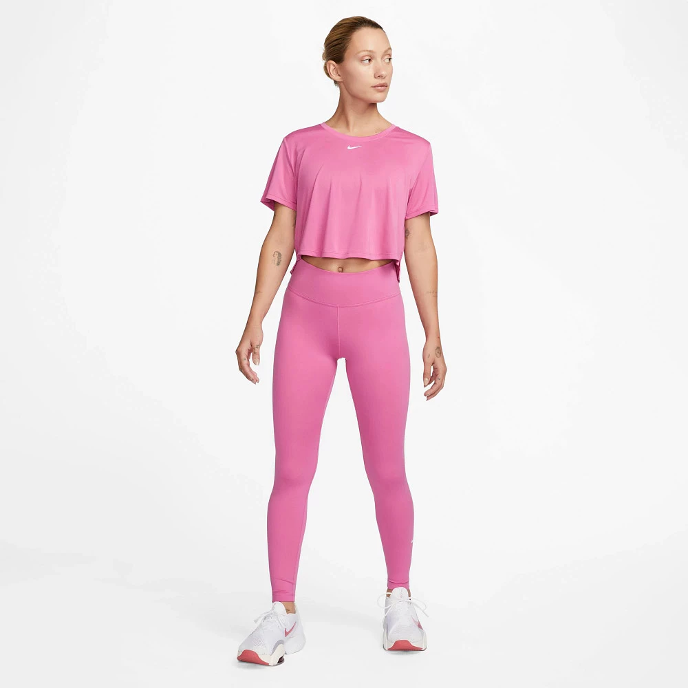 Women’s Nike® One Dri-FIT Short Sleeve Crop Top :: Look good, feel good in your Women’s Nike One Dri-FIT Short Sleeve Crop Top. Made with 100% recycled polyester fibers, you’ll love the soft breathable material. Nike Dri-FIT technology moves sweat away from your body for all-day comfort. “Just Do It.” is printed on the interior in case you need a little extra motivation mid-workout.