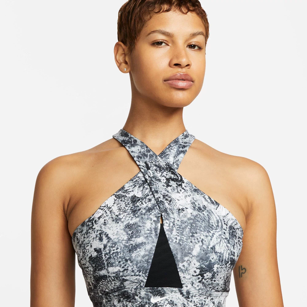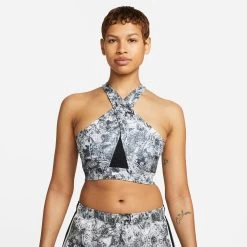 Women’s Nike Dri-FIT Wrap Bra Top :: Get wrapped up in style and comfort thanks to your Women’s Nike Dri-FIT Wrap Bra Top. Dri-FIT sweat-wicking technology keeps you comfy while the smooth, lightweight fabric provides a hugging fit that stretches and moves with you looking super fit and feeling ultra cool! Get out there and make an active statement – Nike has got you covered.
