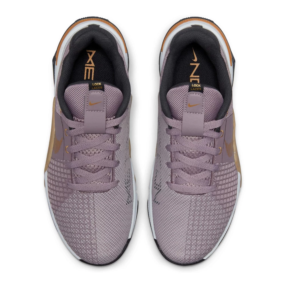Women’s NIKE® METCON 8 PRM :: Celebrate the successes and strength of women in your premium Women’s Nike Metcon 8 PRM. A wide base distributes your weight for a stable lifting experience. Enjoy tab locks that keep your laces snug and Nike React foam, which is comfortable and responsive for cardio and lateral movement. With high-grip rubber around your arch, you can climb ropes like a pro in your Metcon 8 PRM and easily transition from the weight room to the pavement.