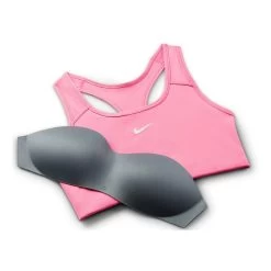 Women’s Nike® Swoosh Padded Bra :: Perfect for running, gym, spin, or cross training, compressive fabric meets a removable 1-piece pad in your Nike Swoosh Padded Bra. Made for comfort and support, the racerback design also gives you freedom to move. Customize shape and support and get after it with Dri-FIT fabric pulling sweat away from your skin.