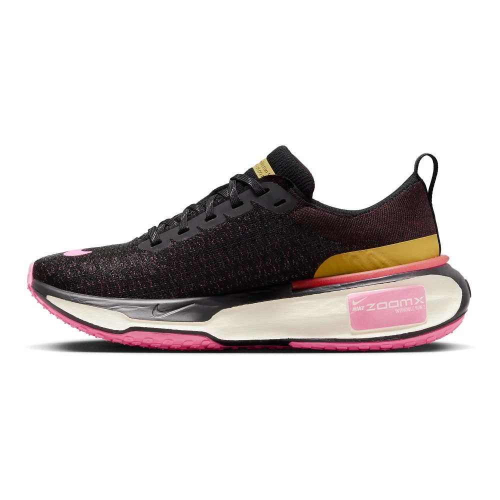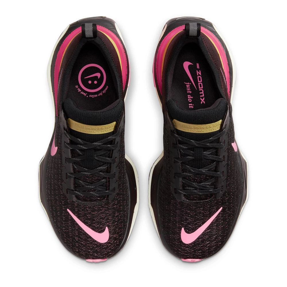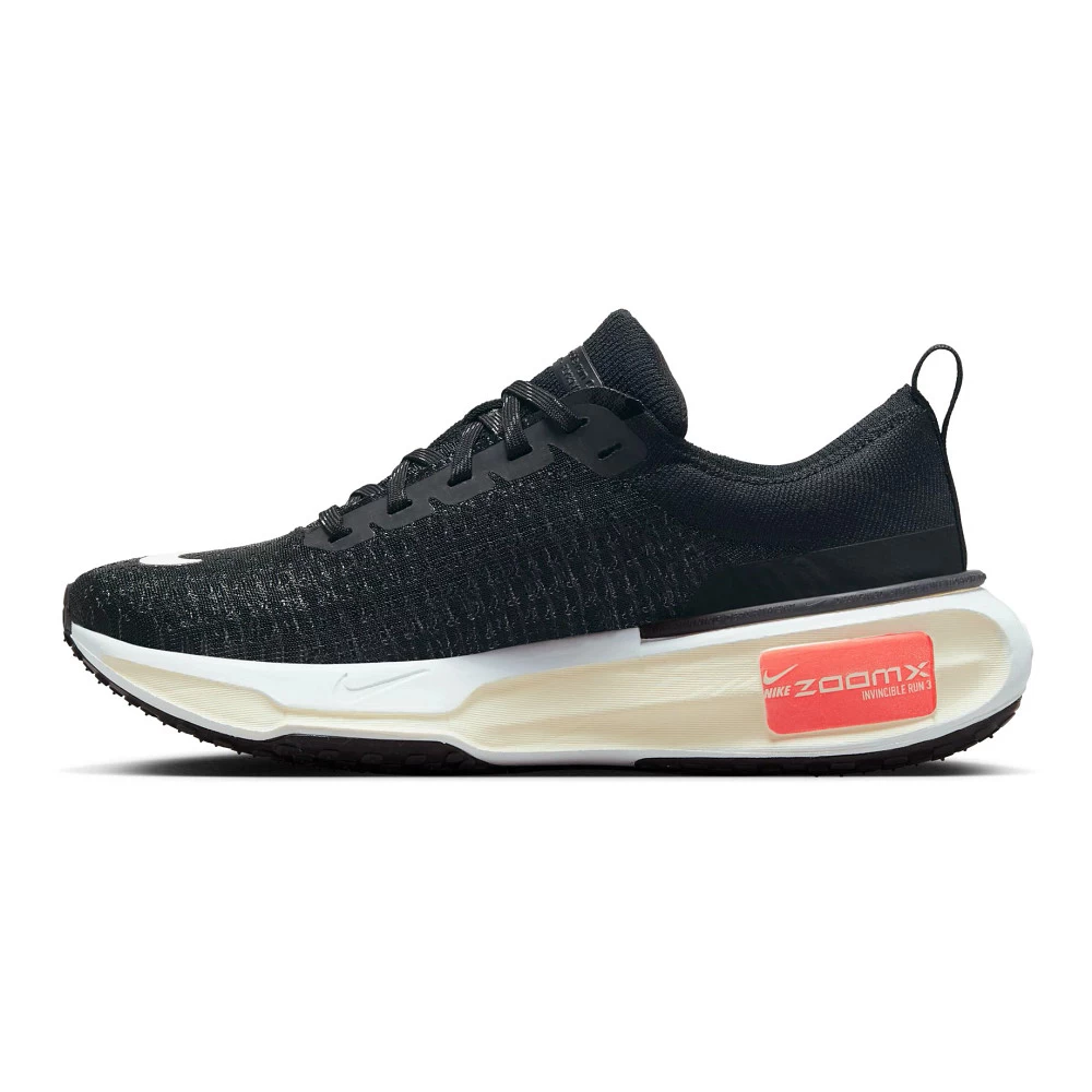 Women’s NIKE® ZOOMX INVINCIBLE RUN FK 3 :: Perfect for the road, your updated Women’s Nike ZoomX Invincible Run FK 3 took everything good about the 2 including its beloved rocker shape and bouncy foam, and just cinched up areas that needed perfecting. You know the spots on your foot that get really sweaty after a tough run? A refreshed flyknit upper includes extra breathing room in those zones for more airflow and an even better experience over long distances. With improved tooling in the fit, materials, and the way it rides, you won’t want your next run in your Zoomx Invincible Run FK 3 to end.