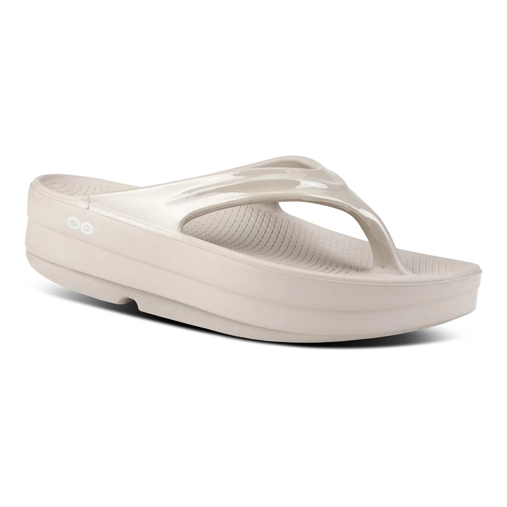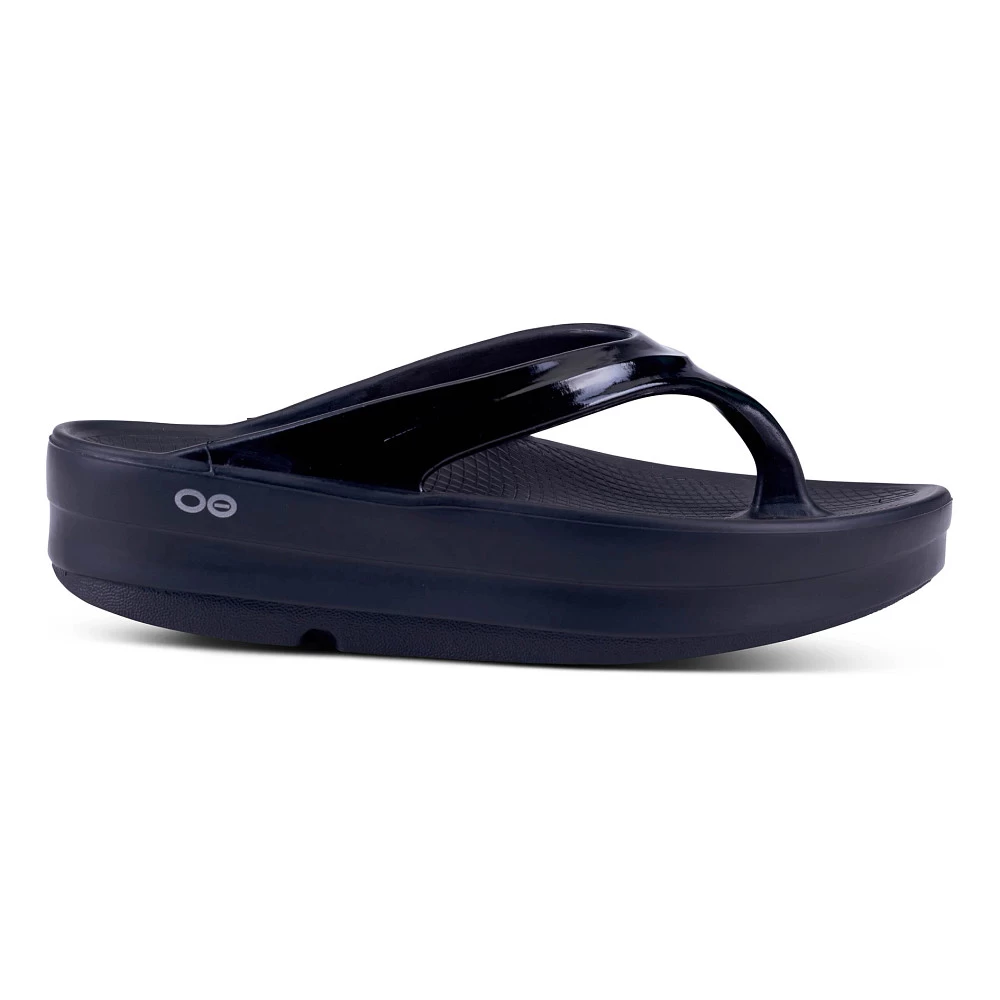 Women’s OOFOS® OOMEGA THONG :: A trailblazer in platform sandal fashion and function. If you liked the OOlala, you’ll love your new Women’s OOFOS OOmega Thong, bringing the same impact absorbing OOfoam™ footbed but with a twist. OOFOS designed this style with a MEGA midsole, increasing the protection and comfort under your foot by 15mm. Restore your feet after a long day of training and go show them off on the town wearing the OOmega Thong.