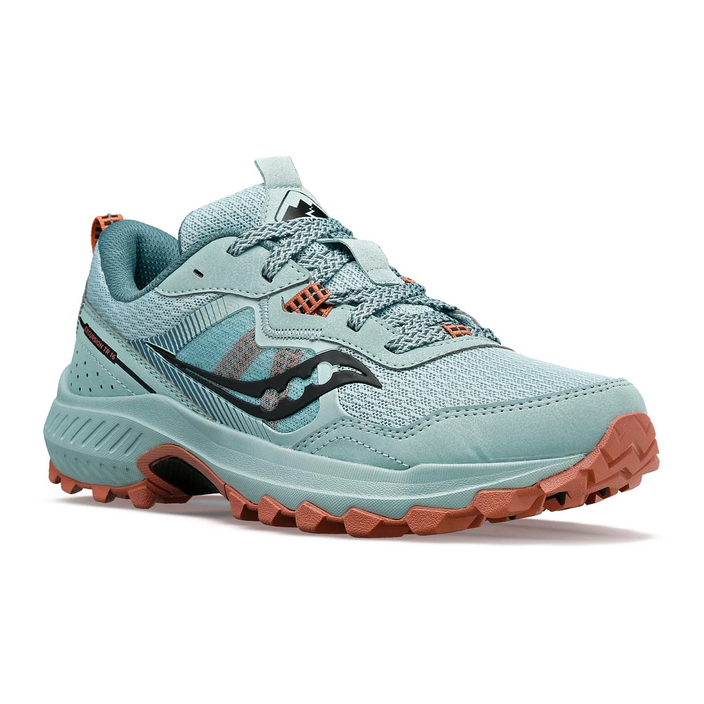 Women’s Saucony® Excursion TR16 :: Meet your all-around trail runner. An outdoor essential that’s capable of taking you farther, the Excursion TR 16 is up for anything. Springy and comfortable, it’s designed with traction-ready grip that hugs any terrain you throw at it. Don’t stop now.