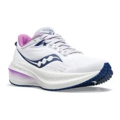 Womens’:s SAUCONY® TRIUMPH 21 :: Glide on air while leaving your competition in the dust! Your updated Women’s Saucony Triumph 21 running shoes now give you PWRRUN+ technology which provides cushiony comfort and a plush underfoot feel. The new flat-knit upper utilizes a redesigned lacing system that allows you to find your optimal fit while providing security. Plus, they’re vegan and made with recycled materials, so you can feel like you’re making an impact with each step! With a 360° fit and a 10 mm offset, your lightweight (8.8 ounces) Triumph 21 shoes are ideal for conquering your next PR!