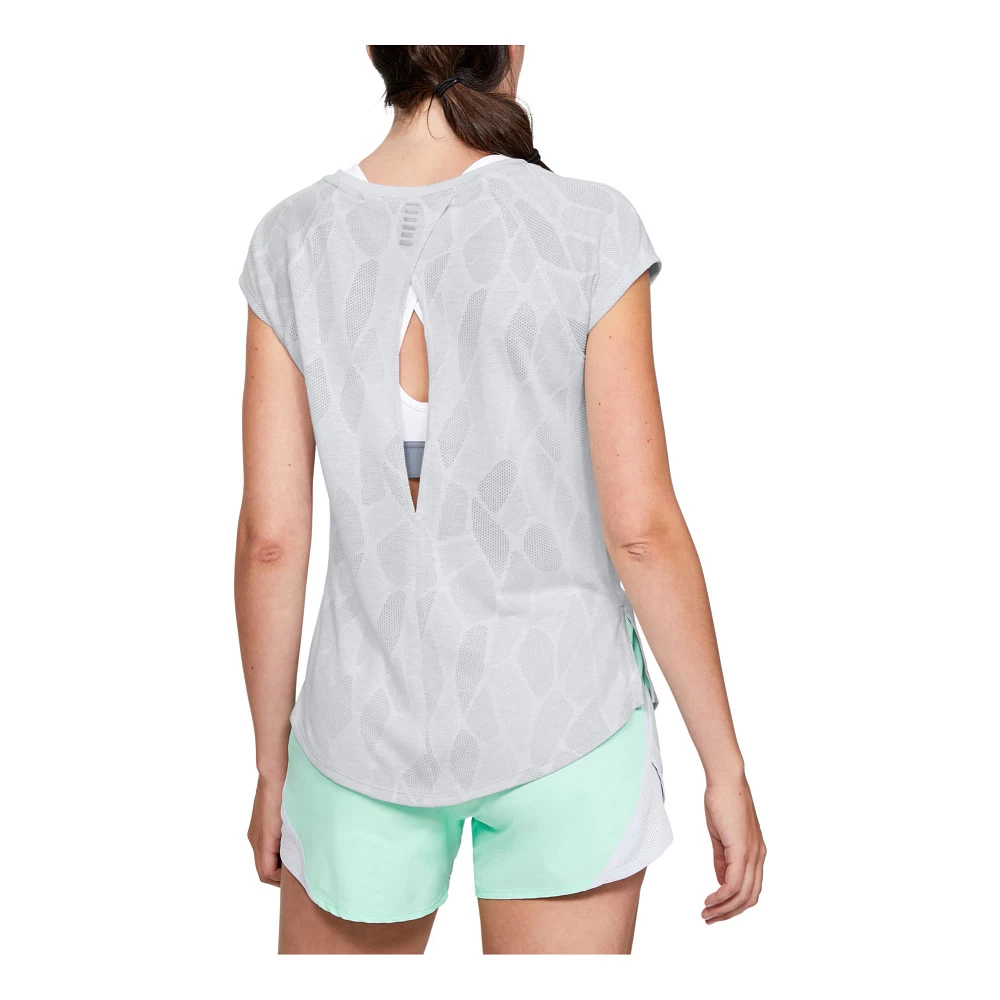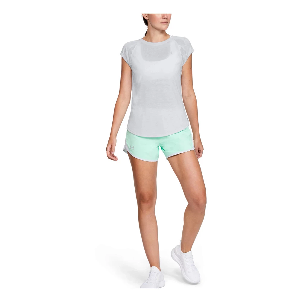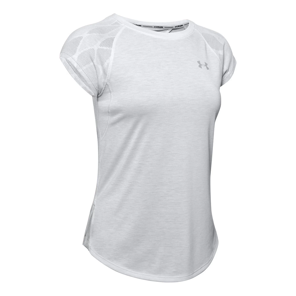 Women’s UNDER ARMOUR STREAKER® 2.0 SHIFT SHORT SLEEVE :: Your stretchy Women’s Under Armour Streaker 2.0 Shift Short Sleeve won’t cling, won’t chafe and doesn’t absorb sweat. UA Microthread fabric dries really fast, and moves sweat away from skin to evaporate quickly. Maintain coolness through mesh panels and stay seen after dark with reflective details.
