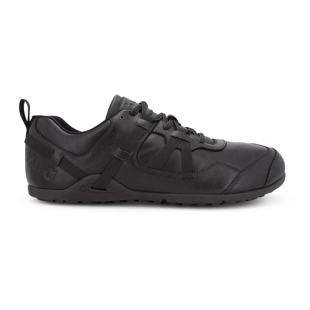 Women’s Xero® Prio All-Day SR :: Slip resistance has finally met natural comfort. With all-black, full-grain leather to meet service industry standards, and our huarache-inspired tensioning system for a secure fit, your feet will feel as good at the end of a long shift as they did before it started. The Prio All-Day features a flexible, non-slip sole with our dual-direction chevron pattern for traction you can depend on. The wide toe box and low-to-the-ground design will keep your feet feeling free all day. And at only 10.6 oz each (M9) you’ll barely notice you have them on!